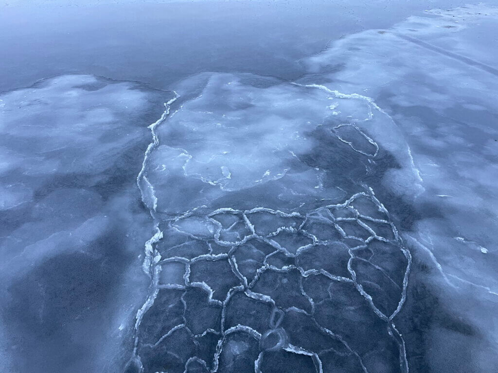 Also cool: a patch of pancake ice frozen into a larger sheet!