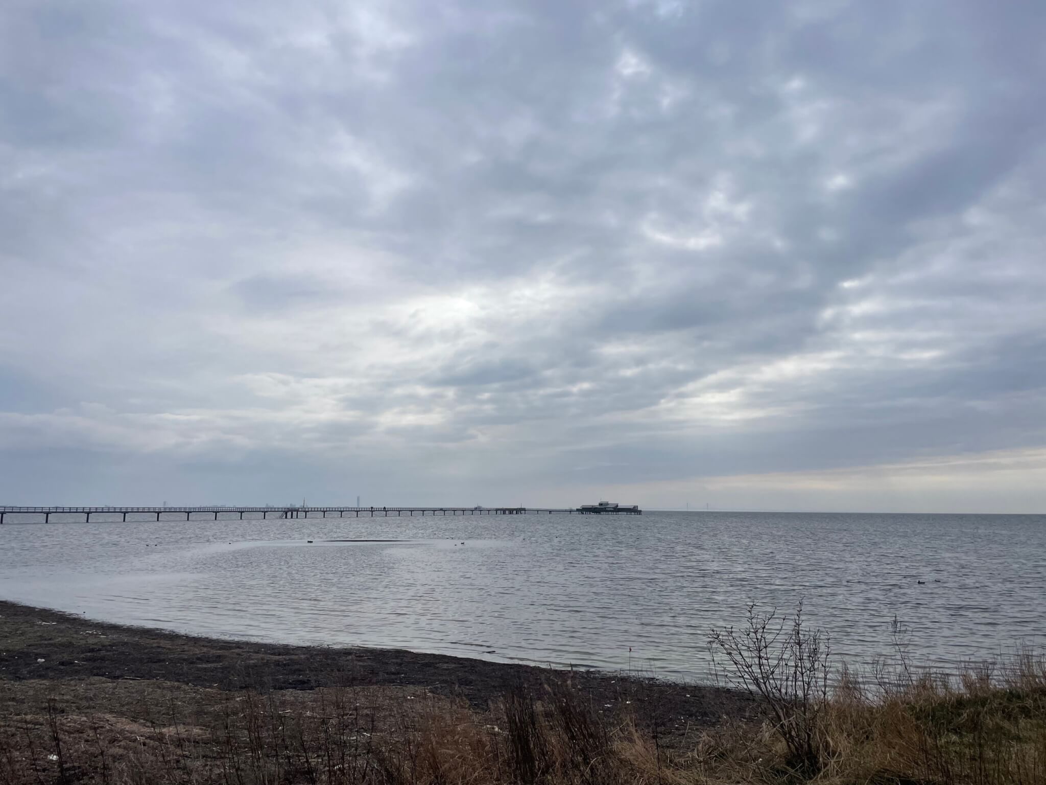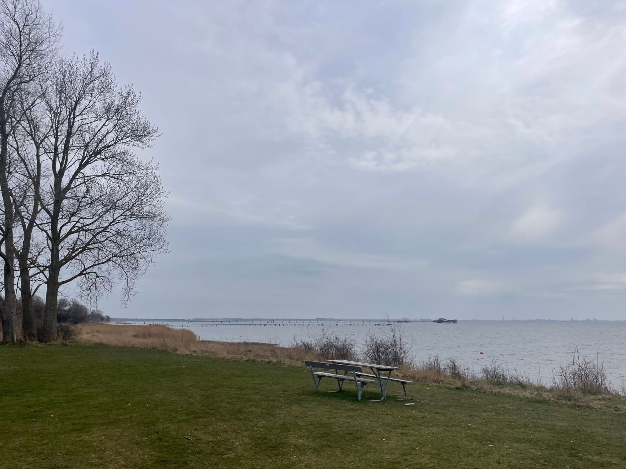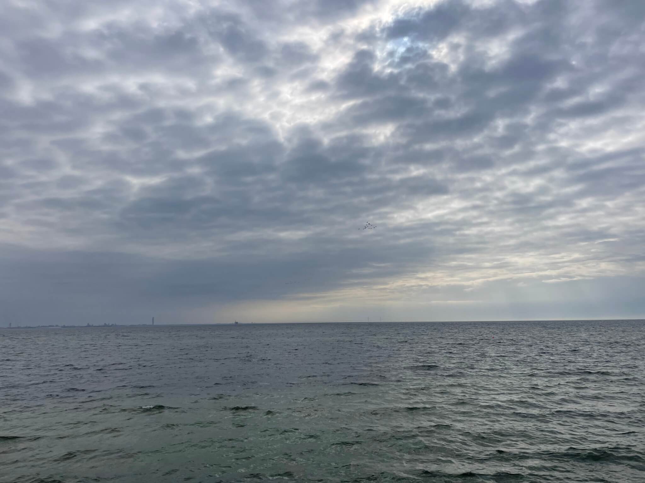 A little wave watching: cool to see the surface roughness change where some sea weed is damping out the waves and before there is sufficient fetch for waves to grow again!